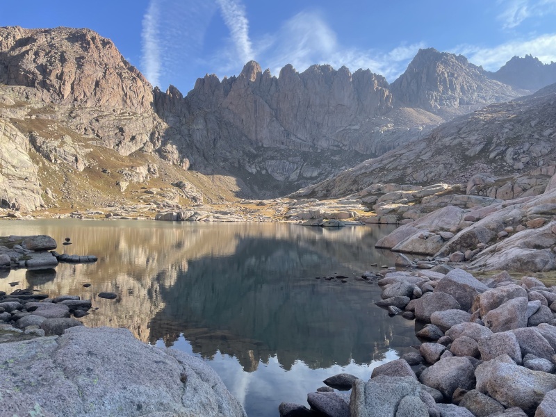 Speaking of gear, I used half-tights, a t-shirt, windbreaker and hat/gloves. The windbreaker was mostly worn above 12,000ft and I found that adequate for the weather. I brought a headlamp, poles, an in-reach (more on that later), filter, puffy, and hardshell. I had the normal mini-maintenance kit with stuff like tape, advil, etc. For navigation, I had a route mapped on my Garmin watch, plus the downloaded area on google maps. I wore my most trusted trail shoes (La Sportiva Jackal), which, of all the shoes I own, are the least likely to leave me with blisters. After 5.5 hours, I was filtering once again at Twin Lakes and preparing to slog up the Eolus group. I had it in my mind that I could potentially try a 4th/low 5th ridge up Eolus to add some excitement, however I ended up prioritizing the extra trip to the lakes and security of a well-traveled route. If I were to ever do this again, I think I'd get a little more creative with the route.