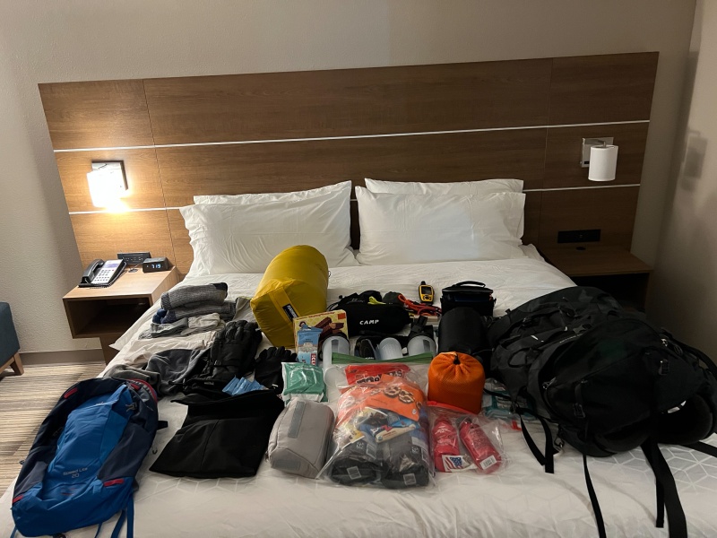Everything I hoped I'd need for the trip. I took way too much food.I don't know what it weighed, but I'd guess 45 lbs.