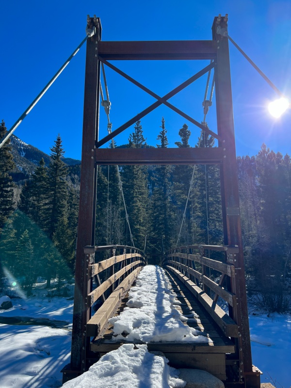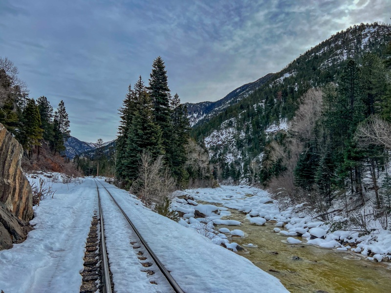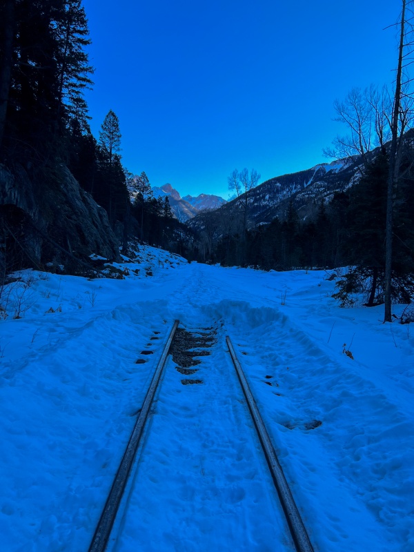 After reaching the Cascade train stop, I crossed the bridge and started following the train tracks, they were plowed for a few miles, I took off my snowshoes and carried them again.