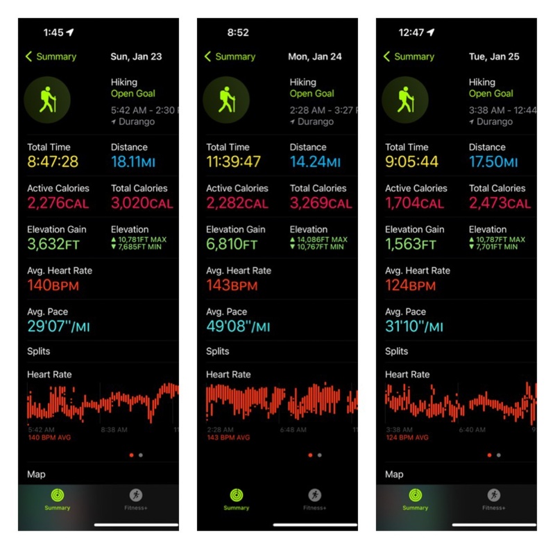 I made it to camp right at 3:30, I never expected to make that kind of time, just under 9 hours from start. Apple and Garmin both agreed on distance for the day, a hair over 18 miles.