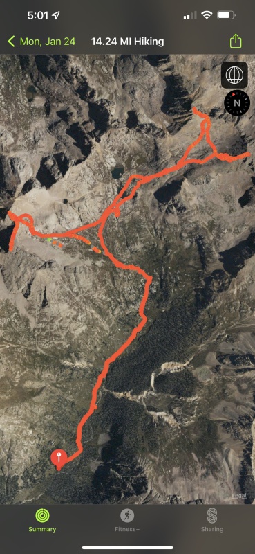 Everything was good so far, but I had a long day ahead of me. I really had no idea how long it would take me to get to the basin, I wasn't even sure I'd get there on day 1. Told my SAR crew I hoped to get there in a day, but might take until after dark. I had enough junk food, er, rations to last 5-6 days if needed.