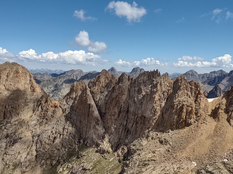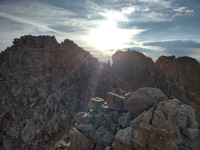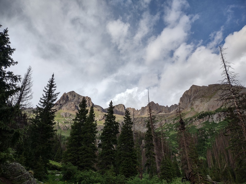 Concluding Thoughts Overall this was a very successful and enjoyable trip. Geo knocked two more 14ers off the list, including getting to the true top of Sunlight's summit block. It would have been nice to get the other two 14ers but considering everything that's happened over the last year this was still a very good accomplishment. Meanwhile I repeated Sunlight and Windom - once again jumping off the Sunlight summit block - and added on centennial Jupiter which I had wanted to get last time, plus had the unexpected surprise of discovering Peak Eighteen to be draped in wildflowers along fun class 3 grass ledges/ramps/gullies leading up to a summit with unbeatable views of everything in this region! I did however manage to draw blood with a scrap to the knee and another on my right thumb plus somehow shattered the ultrawide lens on my phone. Fortunately the other lenses were not damaged so I could still take normal photos but when I tried to take anything in ultrawide mode I got the funky frosted effect you see below.