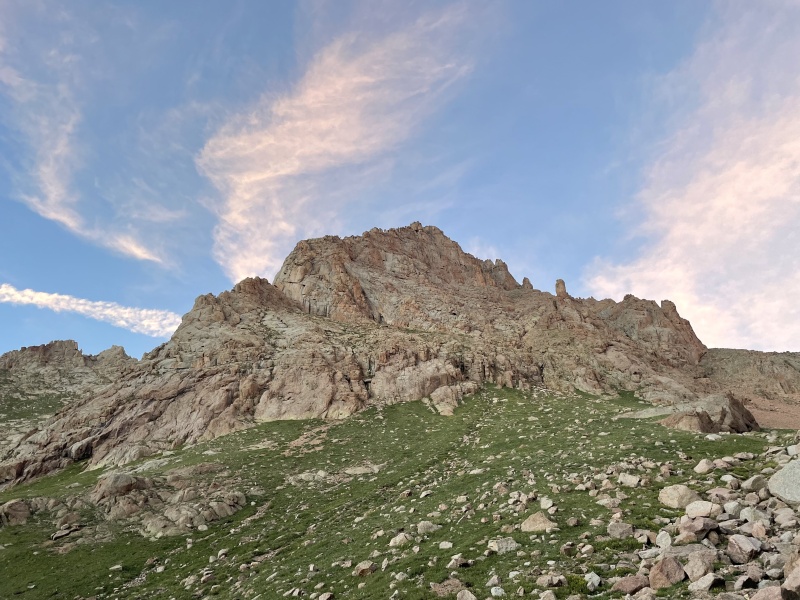 Day 2: Jupiter My alarm was set for like 5am today, but we didn’t get up until around 7. Lazy bones. Zofia’s knee hurts unfortunately, hurts to squat even. No bueno. I can empathize. She’s been dealing with this for a while, but today it’s a bit extreme and we don’t want to make it worse. Guess I’m going to hit Jupiter solo. No worries, she can enjoy some time alone to journal and check out a waterfall uphill from the campsite, and rest up for our day tomorrow. Which will surely be an event. I wait until about 9am to take off, a bit late surely, but I was feeling confident I’d be fine with storms. The forecast wasn’t too bad, maybe 30% chance on NOAA after noon. I take a big fanny pack I swing around to use as a lumber pack loaded with rain jacket, gloves, compression wrap, 2 small bottles of water, and some snacks and my phone. Off I go. The climb of Jupiter was pretty great. I took the columbine trail and immediately got my feet soaked. Then up the tundra filled south slopes of jupiter to the last couple hundred feet of half decent class 3-ish if you want it to be. Top out. Great views. Snap some photos. I decided the clouds looked fine enough to head down the ridge directly to Columbine Pass so I could get some different views and check the trail out. I was initially thinking about the possibility of adding Grizzly C and/or McCauley, but I decided that I’d rather return in the future to camp in the lake below them and make a whole trip out of it because the area looks *gorgeous* and relatively uninhabited. . I definitely got myself into some 4th / low 5th on the ridge in one of the gullys. You could probably avoid it. Otherwise the ridge went smoothly and I had some nice views of Upper and Lower Columbine lakes while making my way back to camp along a more graded descent. Back at camp, Zofia and I had a wonderful time making more dinner and conversing while the clouds cleared out a bit and made way for some excellent sunset cloud displays. Time faded as I drifted into unconsciousness with some music in one ear and what sounded like a babbling brook in the other. Overnight, we were visited by a marmot that chewed my helmet strap and Zofia’s trekking pole handles to bits. We had them in our enclosed fully zipped vestibules as close to the tent as possible, the helmet was literally resting near my low back. I should have known but let this be a warning to bring everything inside the tent with you, and don’t trust the Chicago Basin marmots.