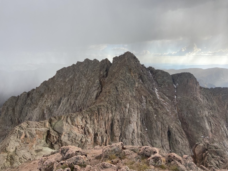 From here, the fun begins. I worked over to the left and kept drifting left as I ascended. Fairly straight forward, but take your time deciding and planning your route. Made it to the summit at 5:15pm. I had clear skies and the weather report didn't call for anything, but at this time I could tell a storm from the east was beginning to back up and head west toward me. Off the summit by 5:18pm and headed for North Eolus. Descending Eolus was fairly straight forward. I was back to the catwalk at roughly 5:32pm.