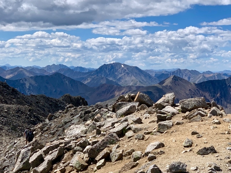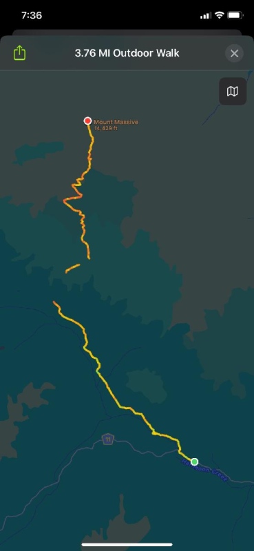 On September 2nd, 2023 I summitted Mount Massive. I arrived on Friday morning at 1:00 a.m. and carefully drove my way to within about 1/4 of a mile, to the Mt. Massive trailhead. I have a Suburban (not lifted) and did not attempt to navigate some large rocks and deeper dips on the road. I believe that I could've made it but there were numerous camping spots near so I claimed one and got some sleep. Friday was a 30% chance of rain but Saturday weather was projected to be 0% so I waited for Saturday. I was up at 3:15 a.m. and was on the trail by 4 a.m. The trail was easy to follow from the trailhead and through the forest but I did make a mistake at one point where the path split and I was not paying attention and stepped over a branch which was laid across that path, which lead to the creek, and was not the proper route. Any time there is a branch laid across the path, my understanding is, that is not the most direct route or maybe not the correct route at all. I made my way up and out of treeline and at the transition point of coming out of treeline there is a significant boulder field, and is easy to get off route, however line of site helps with adjustments. I met alot of people on the route and one of my favorite parts of hiking is meeting people and hearing their story. Like the 81 year old guy from Minnesota and his son. (If I can only be in his kind of physical shape when I am that age maybe I could summit all 58!) Once out of treeline and up to the first of several false summits I would say the route finding is easy. There is a section where you are required to hike downward between two false summits and I hiked much too low and had to hike back upward for about 300-400 feet. My best advice after reaching this area is "hug the ridge" because there is a noticeable path where it appears you should hike downward (and at this point for me hiking downward seemed inviting!) I believe this is mentioned in the SW Route description. After summitting a group of us determined there was no survey marker, which sucks but someone had a sign so that helped. I grabbed a snack, took some photos and then headed back down. Going back down was much easier but keep in mind it is easy to pick the wrong descending route which brings a hiker to the Mt. Elbert Trailhead instead of Mt. Massive Trailhead. One woman and her charming pup, who left the summit well before I did caught up to me on the descent because she had taken the wrong path and it adds several miles to your hike. My quads were very tight during the descent because of the work and I had lost 30 lbs. getting ready for this hike so, I can't imagine how much more I would've struggled if I had not trained for the hike and lost the weight. No rain, a little windy, but blue skies and beautiful views everywhere! Cheers everyone and thanks for the helpful website Colorado 14ers! Until next year, Bill from Iowa ~
