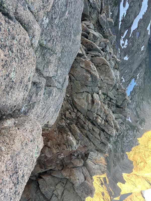 ![]() ![]() Eventually, your fun will run out and you'll unite with the standard route. I initially passed the next move and had trouble making progress here: be particularly observant of a carin up high on a rock to climber's left, sooner than you expect. You'll rejoin at photos 20 and 21 of the standard route. Descending the standard route is probably easier, but honestly I thought that gully was looser! Now, that should've been the end of the Sunlight portion of this report. But I do want to give my two cents on the final move of Sunlight and if you've read this far you might as well read this too.