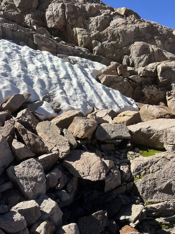 Below the largest formation between Windom and Jupiter, there was a small stream which was flowing just enough to refill water! There's also an opportunity between Sunlight and Windom if you drop low enough. As you approach the gully, keep on the grass further to the right for as long as you can. Beyond the grass, I'm sure there are one million ways to summit. Although the route can surely be kept at class 2+, I found it way easier to stay on larger blocks and find class 3 lines which would keep me off the very loose dirt. The closer you get to the summit, the harder it is to stay on stable ground. I found a small chute exiting the gully to the summit ridge which helped me stay on firmer ground, but made it more technically challenging. It never exceeded 3+, though.