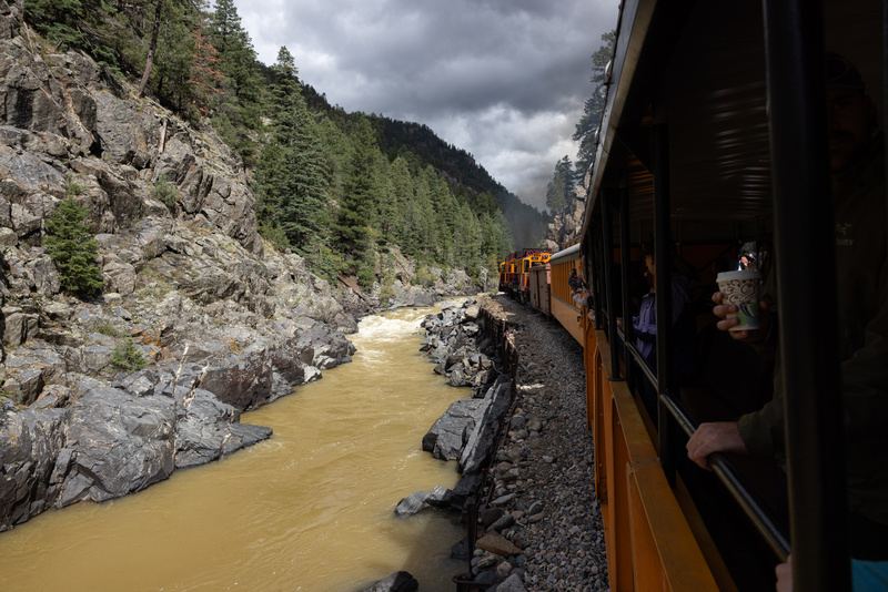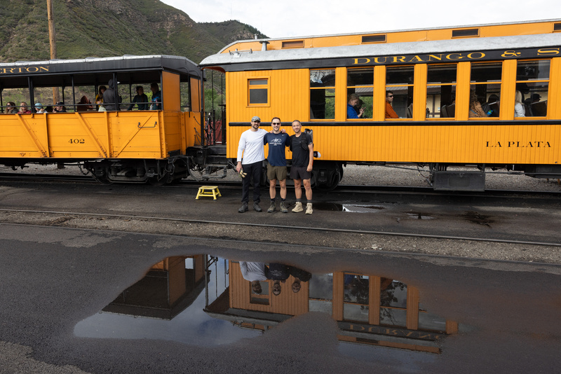 Similar fitness levels and some good banter made for a great rhythm between the three of us. We moved at the same pace, trusted each other’s decision-making, and managed to keep things light-hearted through consequential terrain. Christian and I had planned the trip almost a year ago, and Cabe and I had shared a half-dozen 14er summits since then. All of us had been looking forward to the Chicago Basin mission for a long time, and were super excited to cross off four memorable peaks on our respective bucket lists. Total stats were unclear based on some missing segments and GPX discrepancies, but we believed the round trip from Needleton would end somewhere in the ballpark of 23 miles and 10,000 feet. My banged-up knees and broken toes didn't love the descent back down to Twin Lakes, and I found myself lagging behind the boys, taking every opportunity I could to stop and snap some photos of the unbelievable pastels painted on the surrounding peaks. I resisted digging for my headlamp even after the sun set completely, working hard to stay on the meandering trail while replaying the day’s events in my head. No breath was wasted on the descent from North Eolus, our group opting to test Newton’s first law for ourselves as we autopiloted between the lakes, down the switchbacks, through the forest, and finally back across Needle Creek to camp. We took advantage of a lazy morning in the basin the next day, and spent the quick jaunt back down to Needleton trying to wrap our heads around Anton’s near-impossible FKT from Purgatory. A sweaty crowd had gathered by the time we reached the Animas around 3:00pm, welcoming incoming parties with a cheer from a patch of shade beside the train tracks. We shed our packs and boots near the group and climbed down toward the river to review photos from the weekend, and could’ve sat there all day if we hadn’t been startled back to reality by a steam whistle from around the bend.