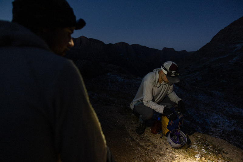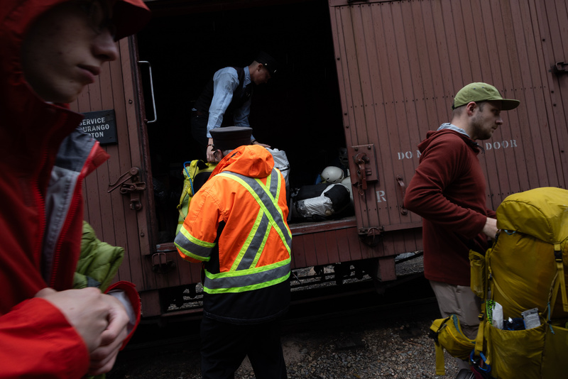 Christian, Cabe, and I slung our packs into an open boxcar and climbed aboard the Durango & Silverton Narrow Gauge Railroad, glued to the windows as the whistle sounded and the train departed not a second behind schedule. Many of the passengers looked like we did—far too clean for the clothes we had on, and clearly on some backcountry mission or another. The rest were train people, most of them wearing train t-shirts and/or train hats, and every one of them fumbling for their cameras each time we crossed an old bridge and were treated to unobstructed views of the winding Animas below. On board, we reviewed some USGS maps with the hot dog man and planned our attack, targeting a grand slam-style linkup of Colorado’s four most remote 14ers in one day. Once the whistle blew at Needleton, we were committed—the only way out was up. We had read about prime real estate being hard to come by in Chicago Basin (especially with backpacking tickets on our train fully booked), and decided we wouldn’t waste any time on the approach. We shouldered our packs and started up the trail, stopping only briefly to filter water and reaching the near side of the basin in around two hours, right as the sky darkened and snow started to fall. Jagged peaks revealed themselves in turn through the fog—first Pigeon and Turret, next Monitor and Glacier Point, then Jupiter, and finally Windom and Sunlight themselves. With some time to kill before the crowds arrived, the three of us explored the lower basin for a bit until the snow turned to hail and sent us scrambling for cover. After combing through options on either side of the trail, we eventually settled on camping in a forested area on the other side of Needle Creek, hoping that the icy water crossing would deter potential neighbors. Local critters had a reputation for chewing through tents, bags, and clothes, so we took extra care to hang proper bear bags and keep anything sweaty high off the ground. The mountain goats and giant porcupines never revealed themselves, but we met a couple inquisitive deer and a swarm of hungry Canada Jays almost immediately.