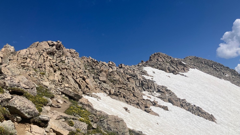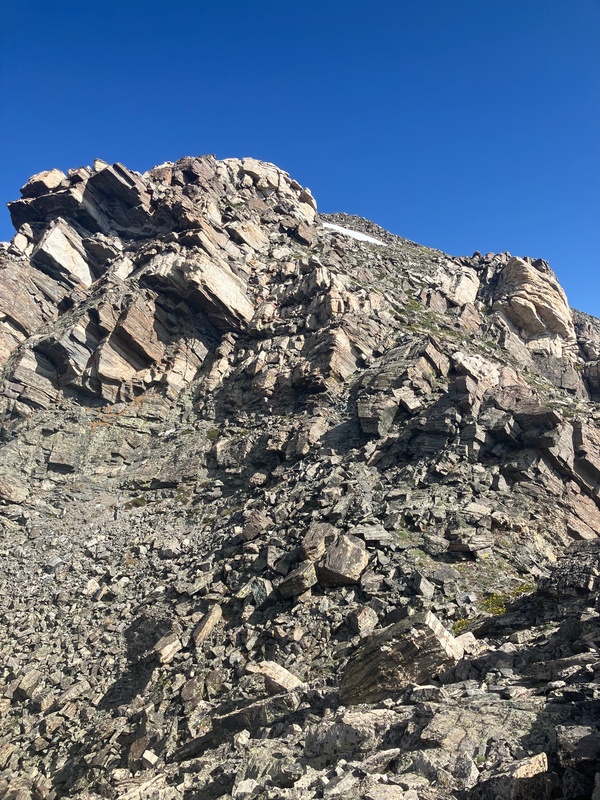 Finally we emerged from the shadow of SSM and we stood upon its broad summit. The ridge up to South Massive finally came into view. I was not expecting it to look as rugged as it did, but I trusted that it would stay class 2. I would say that there was one part of a cliff band that we climbed through that would be rated easy class 3, but even with my limited experience with exposure (thanks Minnesota) I was still able to handle it.